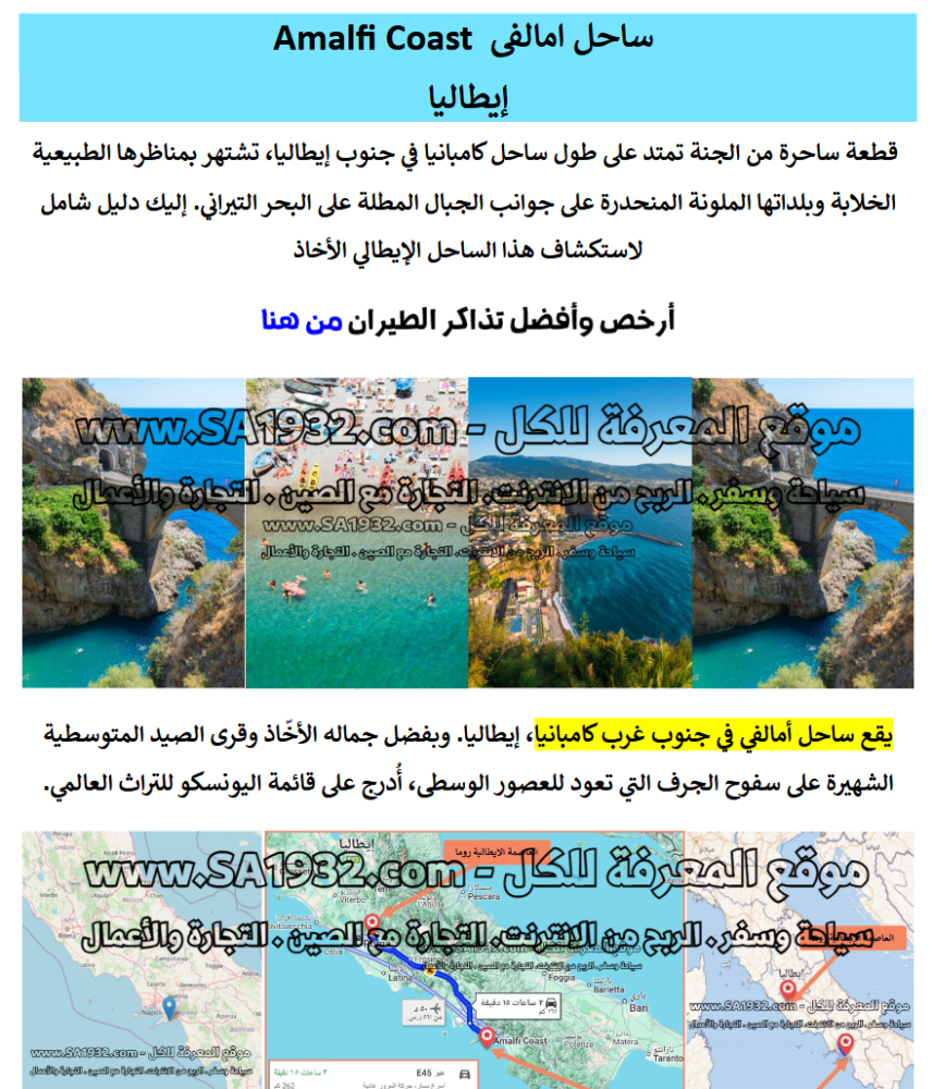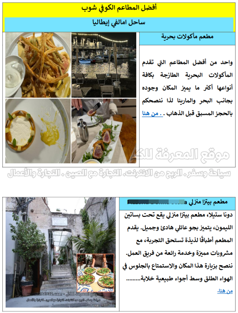 1. دليل رقمي عن ساحل امالفى Amalfi Coast إيطاليا للسياح يمكن وضعه في جوالك والتنقل داخل المنطقة بكل حرية و سهولة كل ما عليك فعله عند الذهاب الى مطعم مثلا الضغط على من هنا وسوف ياخذكم جوجل اليه بكل سهولة .