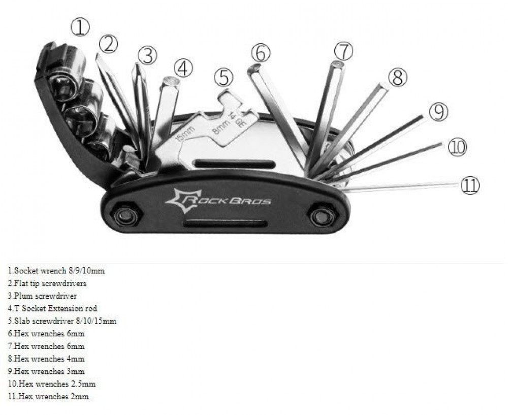 عدة أصلاح الدراجات الهوائية 16 في 1 من روكبروكس ستانلس ستيل تشمل القطع التاليةSocket wrench 8/9/10mm Flat tip screwdrivers Plum screwdriver T So...