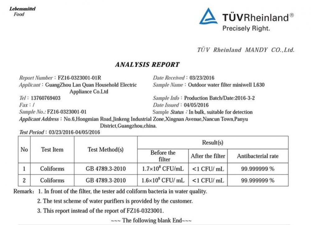 قدرة الفلتر على تصفية المياه هي 0.6 لتر في الدقيقة