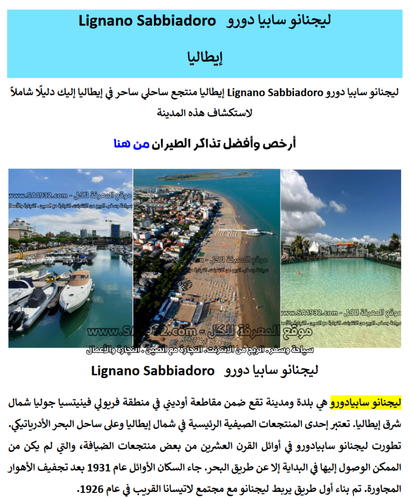 دليل ليجنانو سابيا دورو Lignano Sabbiadoro إيطاليا السياحي الرقمي يحتوي على 100 صفحة يشتمل على :