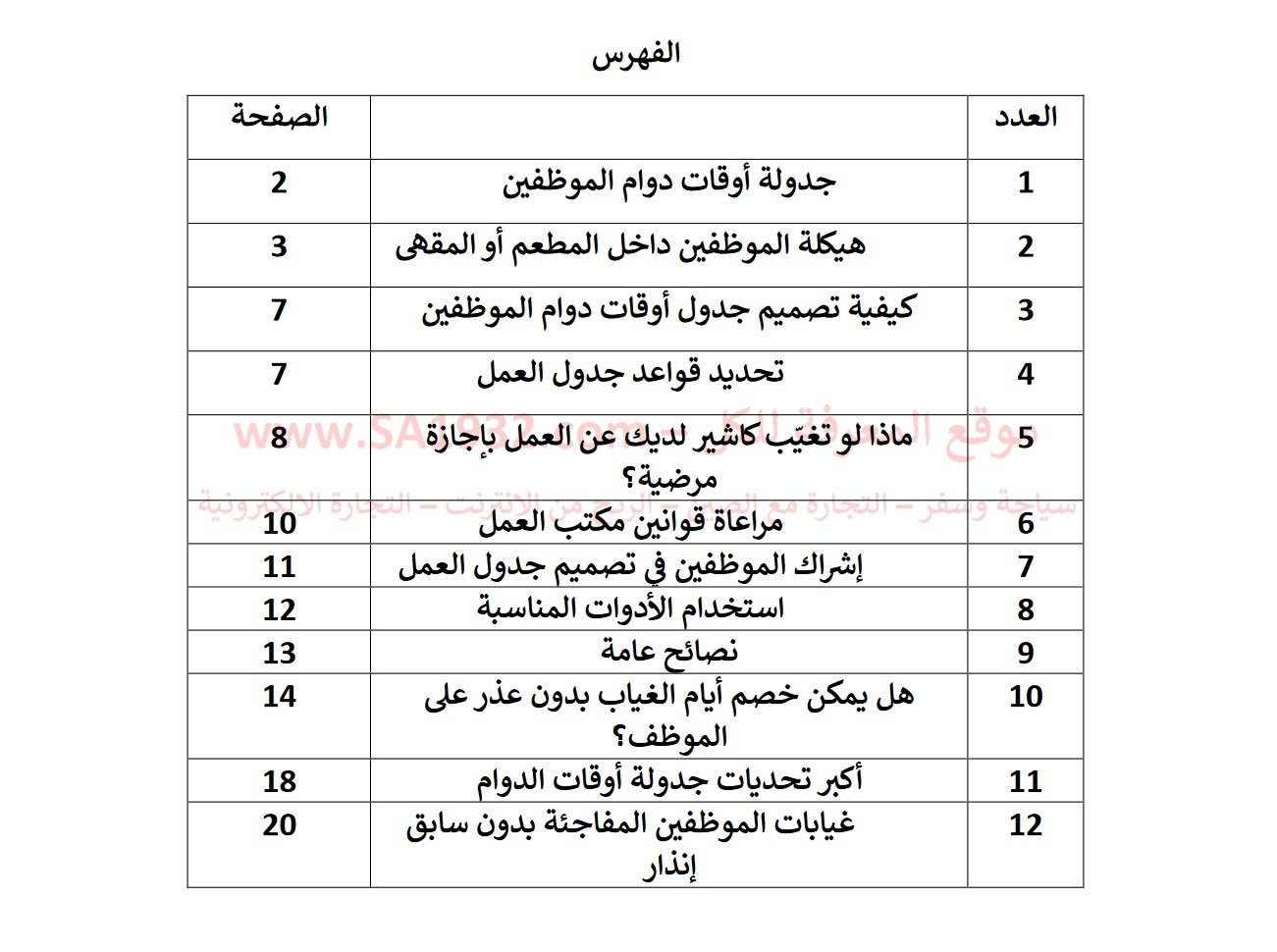 إدارة وتشغيل المطاعم والكوفي شوب جدولة أوقات الدوام وفق أنظمة العمل في السعودية - 21 صفحة - كتاب الكتروني)
