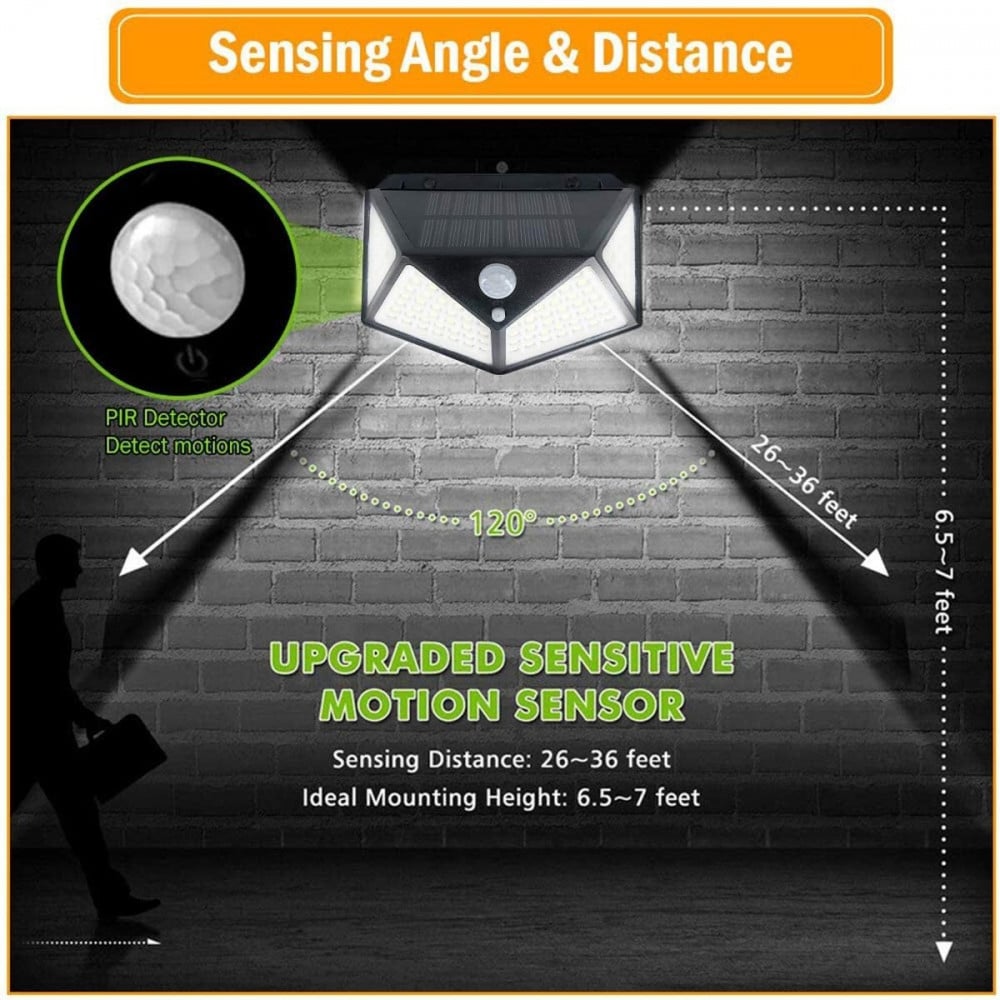 Sensitive PIR motion sensor120 degree wide angle detection, detection range 9-17 feet. 100 high-efficiency LED 2835 lamp beads, the LED array on both sides can expand the irradiation area to 180 degrees.