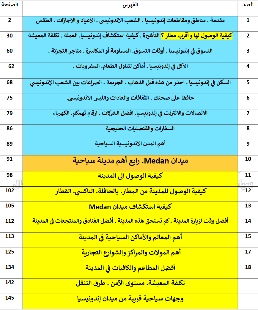 دليل ميدان Medan إندونيسيا السياحي الرقمي يحتوي على 148صفحة يشتمل على :