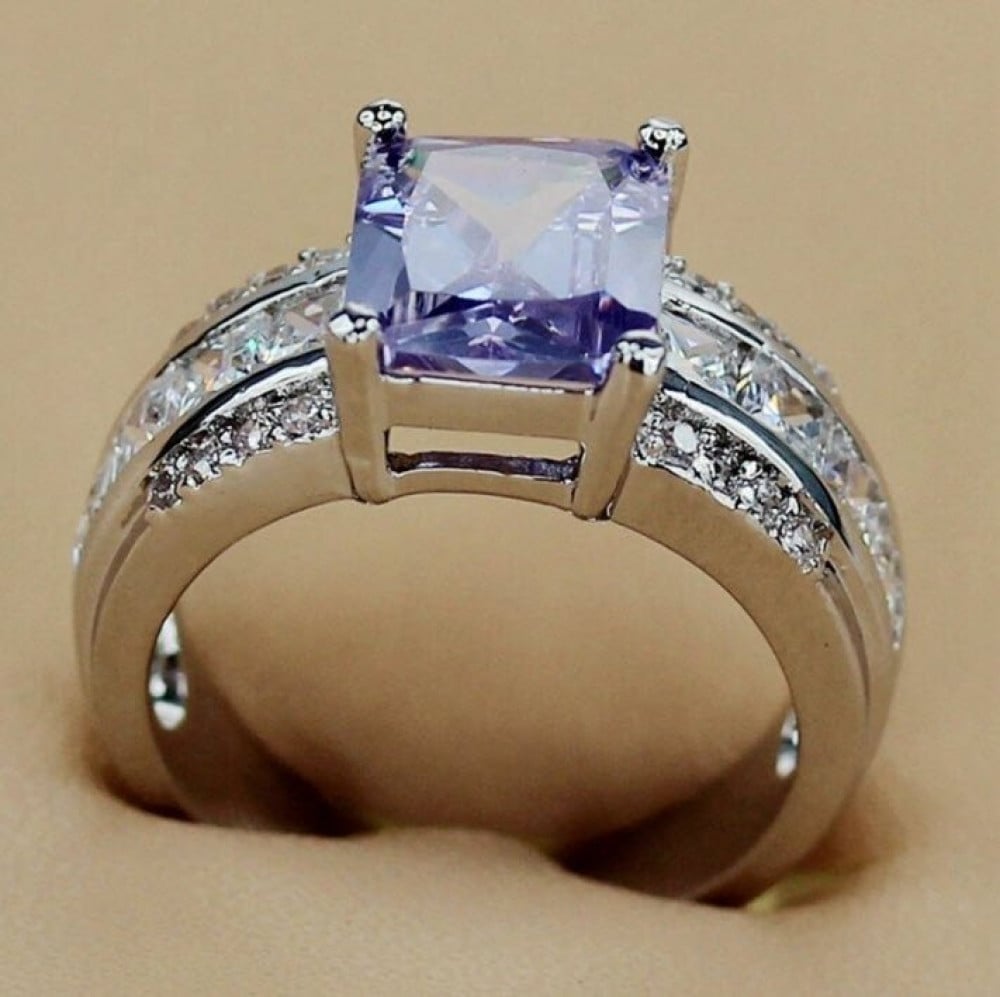 خاتم نسائي مطلي بالفضة ومزين بالزركون مقاس 7.25 أمريكي