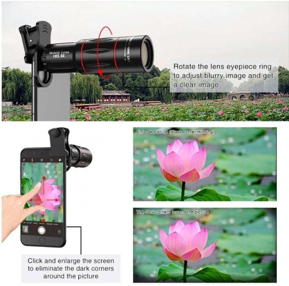 ✅ تخيل الصور البعيدة تستطيع ان تلتقطها بكل سهولة مع تلسكوب التقريب بقوة 18 مرة مع قاعدة (تريبود) وهذا التلسكوب يستطيع ان يتوافق مع أغلب عدسات الأجهزة الذكية.