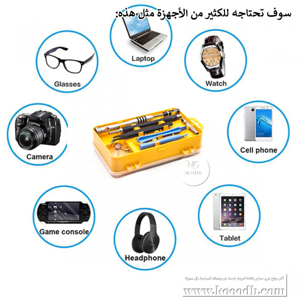 لن تحتاج الى الذهاب الى محل لاصلاح النظارات أو الجوال ، طقم أصلاح الأجهزة الالكترونية يتكون من 112 قطعة مع الحقيبة