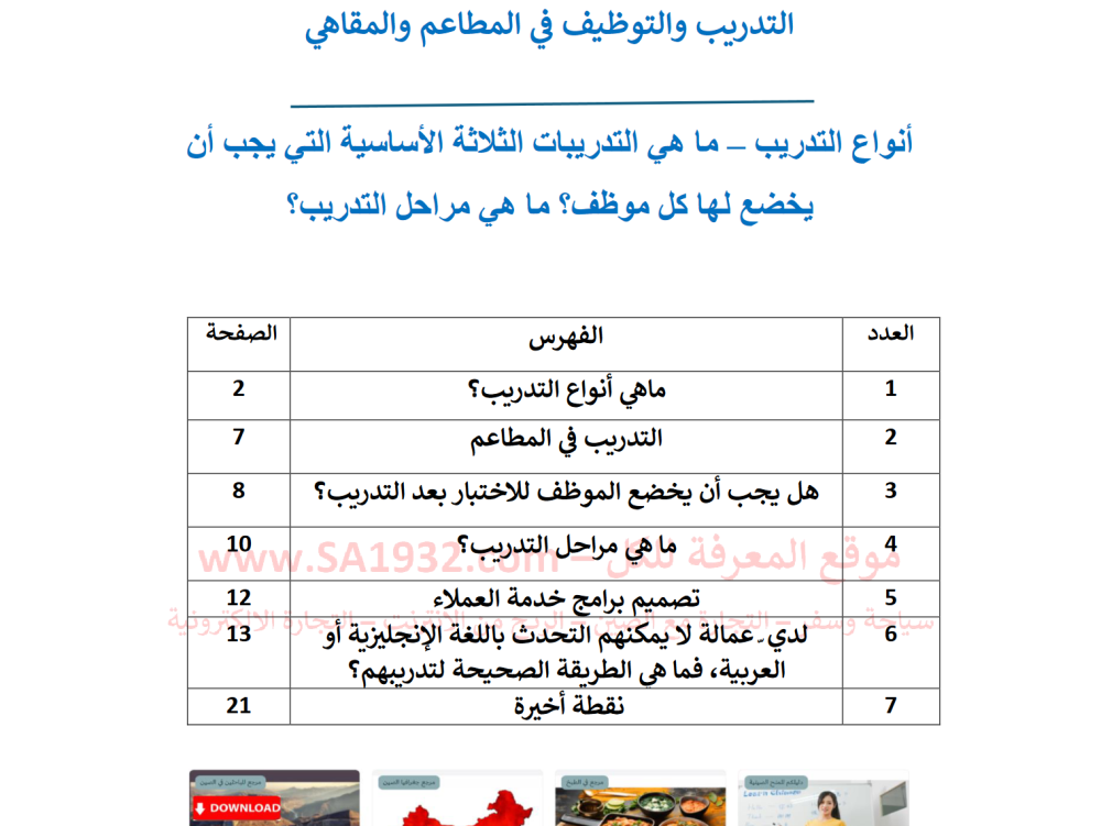 التدريب والتوظيف في المطاعم والمقاهي أنواع التدريب - 21 صفحة