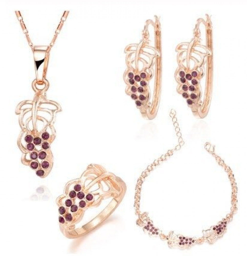 طقم مجوهرات مطلي بالذهب أقراط أذان وتعليقة وأسوارة وخاتم مقاس 7 أمريكي