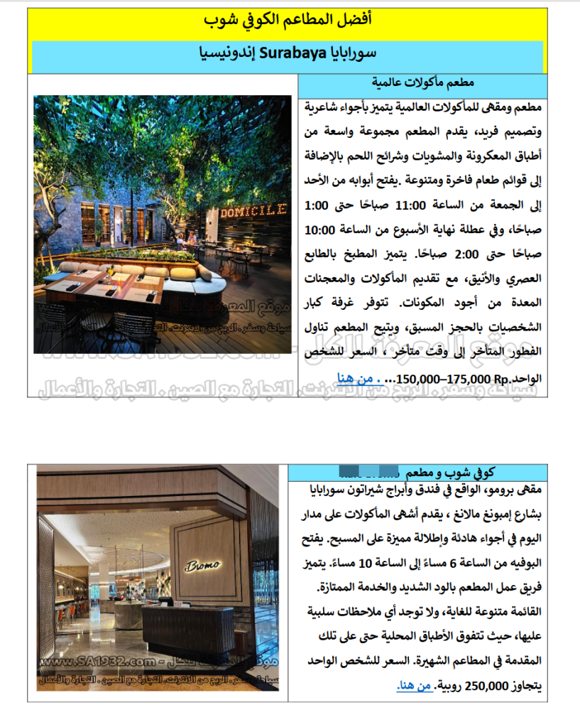 1. دليل رقمي عن سورابايا Surabaya أندونيسيا للسياح يمكن وضعه في جوالك والتنقل داخل المدينة بكل حرية و سهولة كل ما عليك فعله عند الذهاب الى مطعم مثلا الضغط على من هنا وسوف ياخذكم جوجل اليه بكل سهولة .