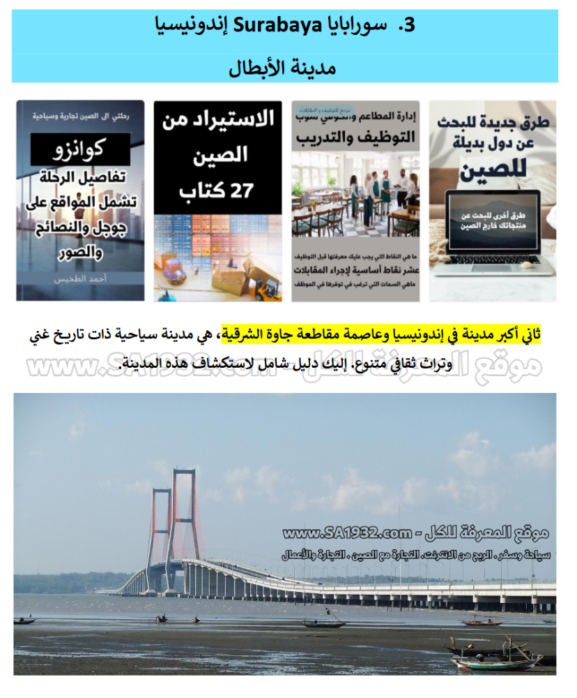 دليل سورابايا Surabaya أندونيسيا السياحي الرقمي يحتوي على 145 صفحة يشتمل على :