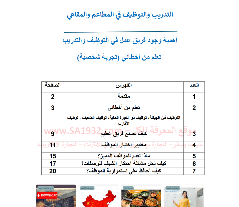 هذا الكتاب الالكتروني تمت كتابته من أحد الرواد في خدمة وإدارة وتأسيس المطاعم والكوفي شوب لأكثر من 30 سنة في المملكة العربية السعودية.