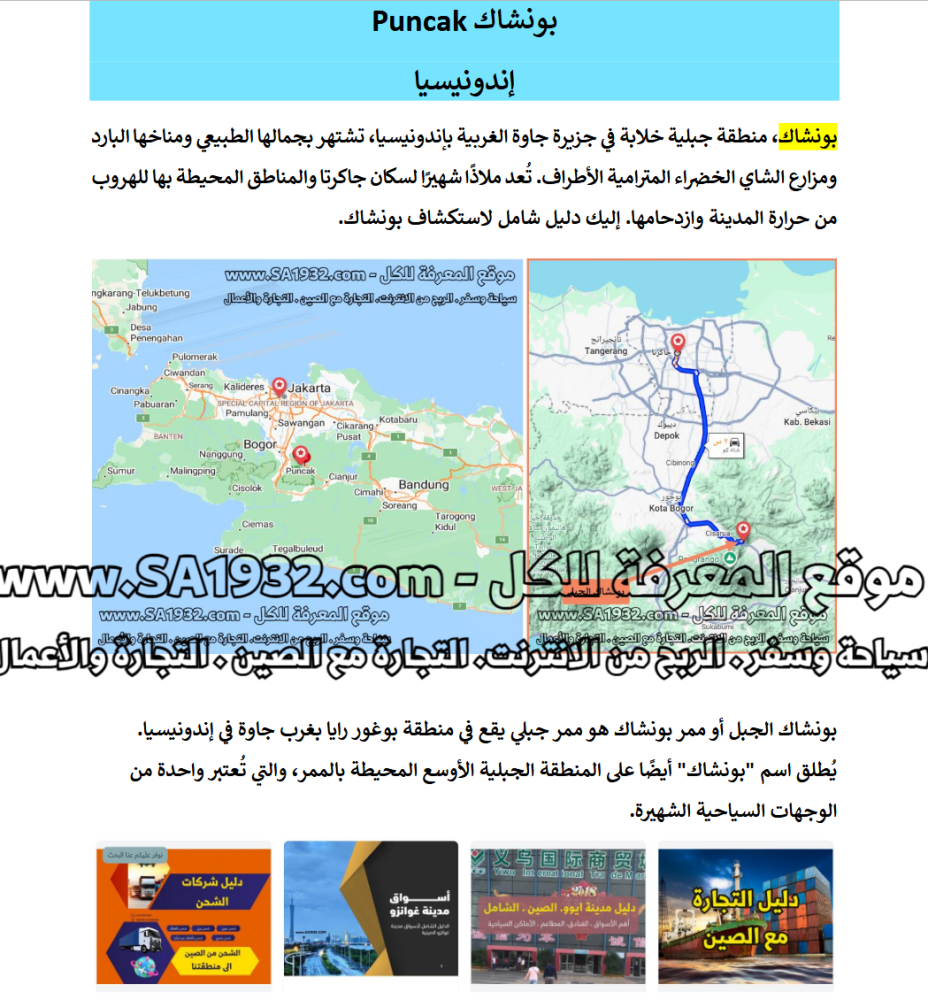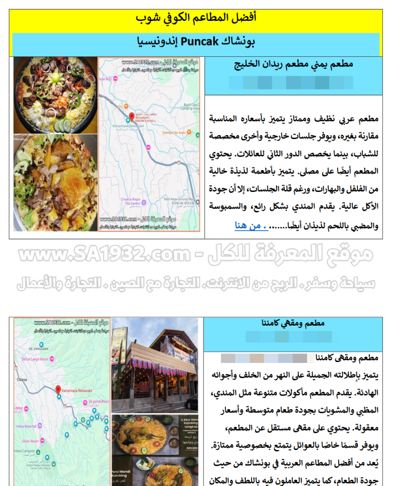 1. دليل رقمي عن بونشاك Puncak إندونيسيا للسياح يمكن وضعه في جوالك والتنقل داخل المدينة بكل حرية و سهولة كل ما عليك فعله عند الذهاب الى مطعم مثلا الضغط على من هنا وسوف ياخذكم جوجل اليه بكل سهولة .