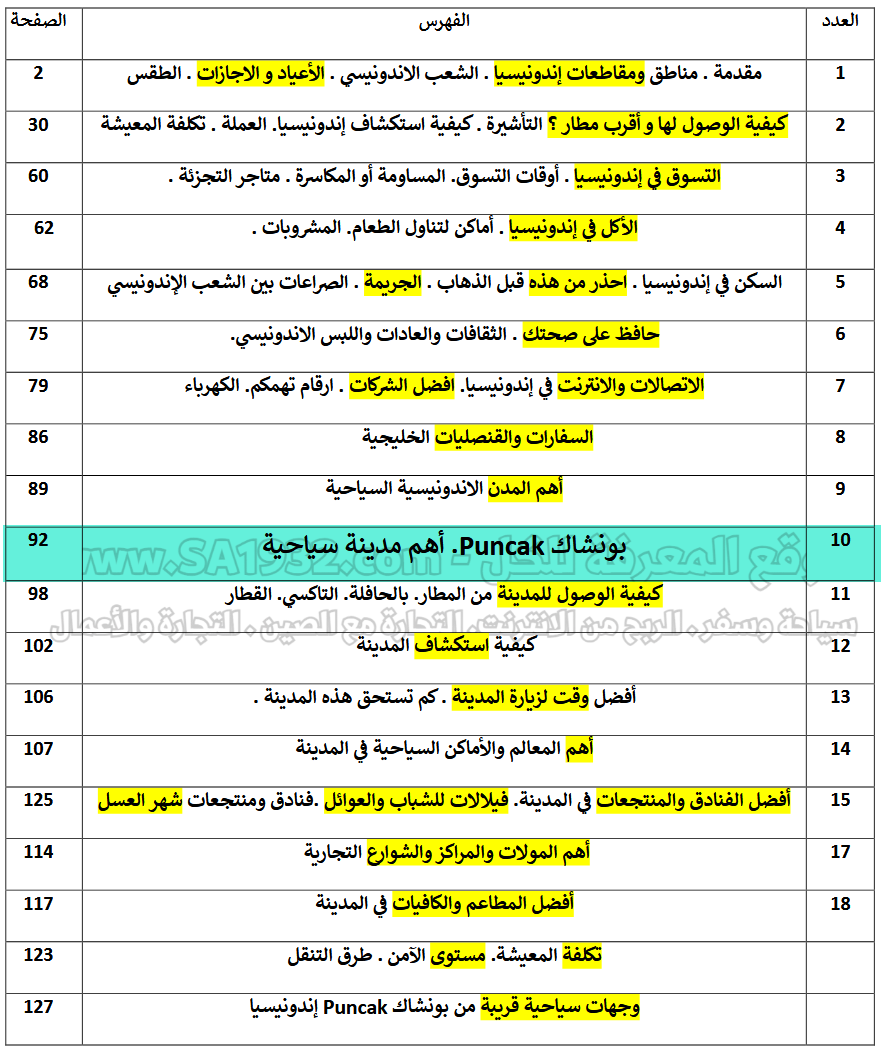 دليل بونشاك Puncak إندونيسيا السياحي الرقمي يحتوي على 144صفحة يشتمل على :