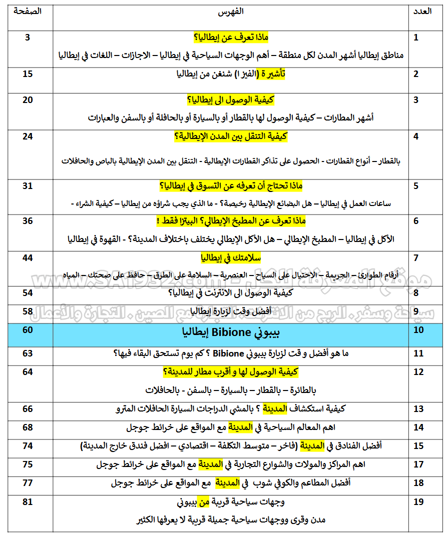 2. هذا الدليل يشمل اسماء أهم المدن والوجهات السياحية في إيطاليا وبماذا تشتهر كل مدينة أو وجهة سياحية.